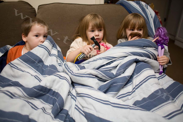 In case you're living under a rock and haven't noticed, there's a pretty big snow/ice storm bearing down on most of the US right now. The kids decided it was a pretty good reason to snuggle together on the couch and watch some cartoons!